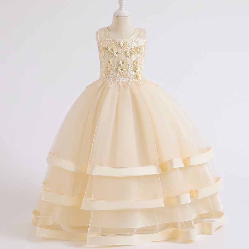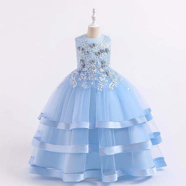 HOT ! Kids Girls' Dress Solid Colored Sleeveless Wedding Party Princess Beautiful Cotton A Line Dress Summer Spring 3-12 Years bule Cameo brown White