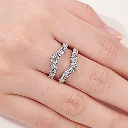 Newshe Jewellery AAAAA Cz Curved Bridal Ring Enhancer Guard for Women Engagement Rings 925 Sterling Silver White Gold Size 5-10 6