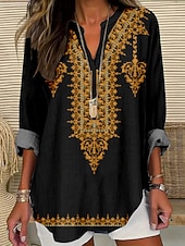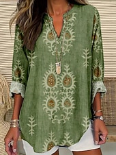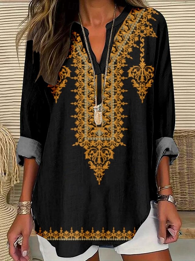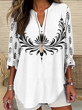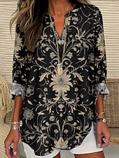 More information about Women's Blouse Floral Stylish Modern Long Sleeve V Neck Regular Tops Daily Holiday Print Black White Gold Green Summer