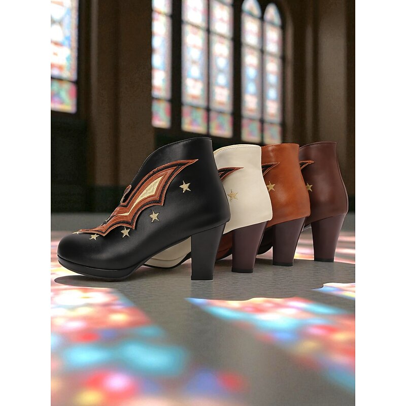 $54.99 - Women's Halloween Bat Embroidered Ankle Boots – Black Faux Leather with Star Details, Closed Toe and Mid Heels, Retro Gothic Style for Costume Parties, Haunted Events and Fall Fashion Looks 2025. Shop for cheap Shoes For Women online? Buy at lightinthebox.com on sale today!