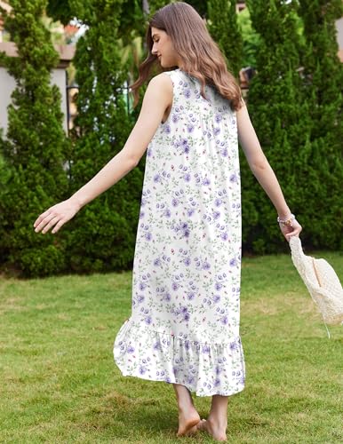 Ekouaer Nightgowns for Women Long Sleeveless Night Gown Victorian Nightdress Button Sleepshirt Soft Sleepwear S-XXXL 5