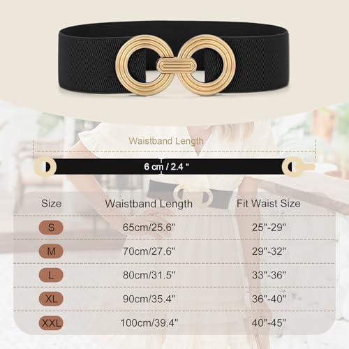 • 【Classic Design】 - This women waist belt consists of hollow out golden round buckle and high-quality elastic band, the wide elastic belt is built to last for rather long time, which fits your waistline perfectly, and brings you a comfortable wearing experience.