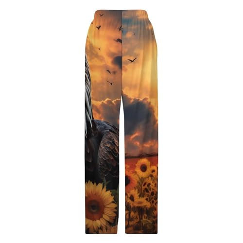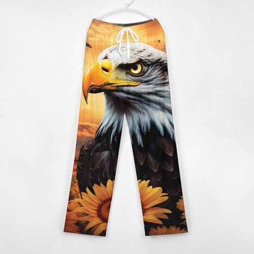 HOT ! Sunflower Bald Eagle Unisex Pajama Pants Soft Sleep Bottoms Lounge Pants Trousers Homewear Sleepwear