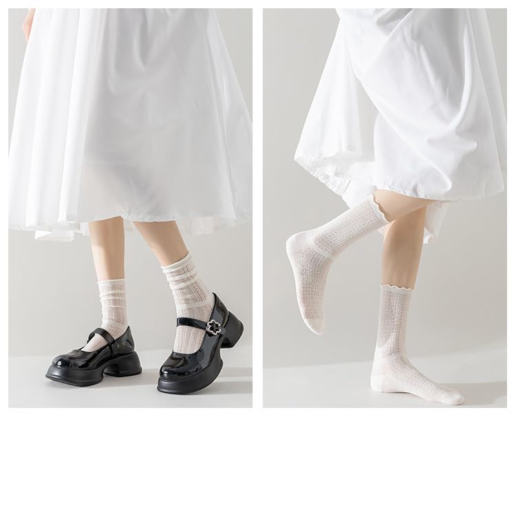 • VALUE PACK: Set includes 5 pairs of white ruffle crew socks, ideal for building a versatile sock collection