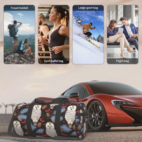 HOT ! Large Duffle Bag for Travel - Pinecone Owl White Gym Bag for Women Men, Foldable Travel Bags for Women Men with Zippered Multiple Pockets