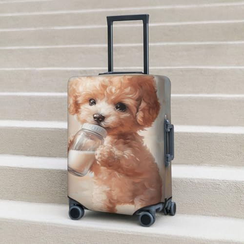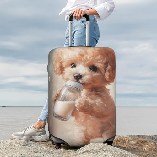 Cute Dog Drinking Milk Elastic Travel Luggage Covers Dustproof Scratch-Resistant Suitcase Protector Fit 22-24 Inch 1