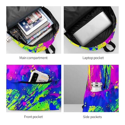 Rainbow Paint Splatters Backpacks 15 Inch Laptop Backpack Multipurpose Double Shoulder Bag for Men Women Gifts 5