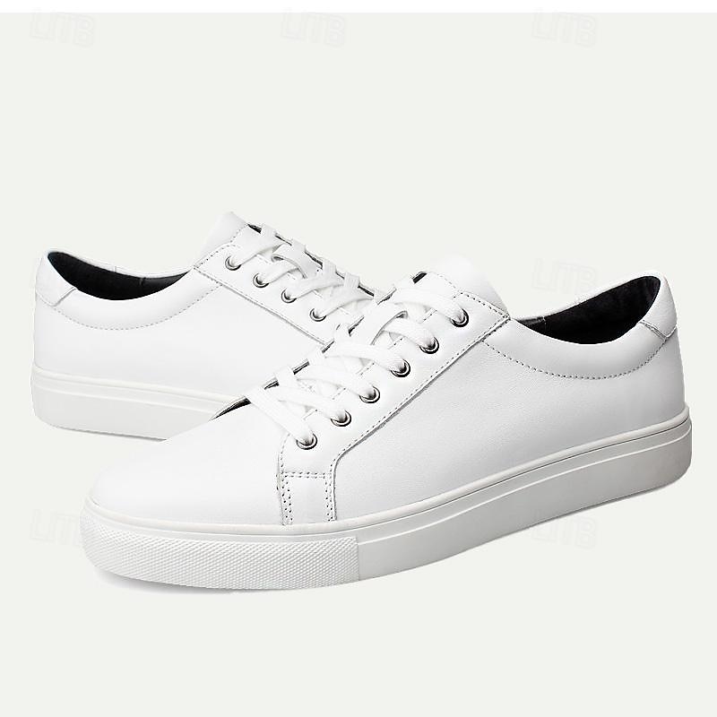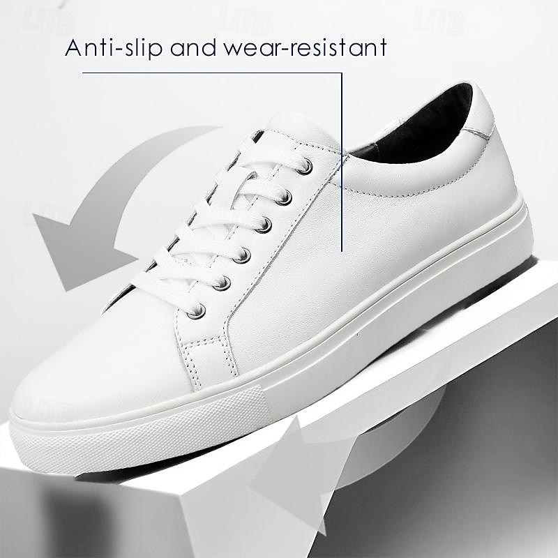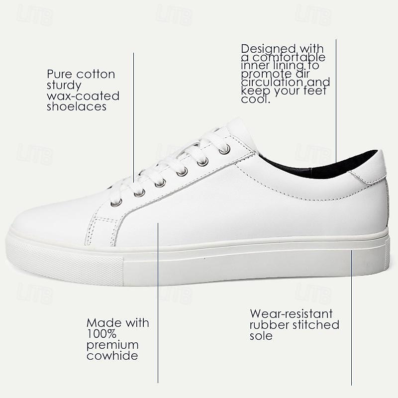 HOT ! Men's Sneakers Dress Sneakers Leather Italian Full-Grain Cowhide Slip Resistant Lace-up Black White