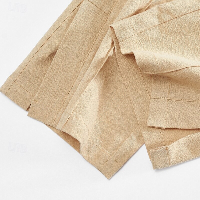 More information about Men's Linen Pants Trousers Summer Pants Beach Pants Elastic Waist Side Button Pleats Plain Comfort Breathable Full Length Casual Daily Holiday Vacation Fashion Black White