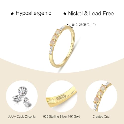 EVER FAITH Dainty Created Opal Band Rings for Mothers Day/Valentines/Christmas, 925 Sterling Silver CZ October Birthstone Engagement Wedding Eternity Ring for Women 5