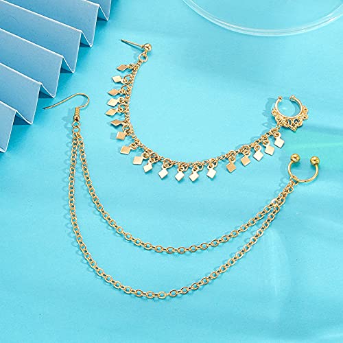 3 Pieces Nose Hoop Chain Rings Double-layer Septum Non Piercing Nose Hoop Ring Dangle Chain Earrings 4