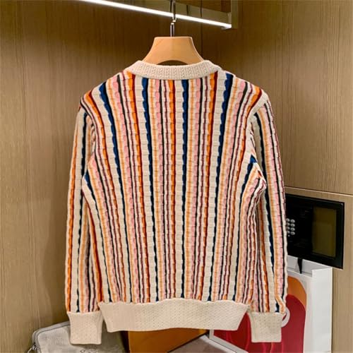Men's Hip Hop Streetwear Knit Sweater Oversized O-Neck Striped Casual Full Sleeve Vintage Harajuku Sweater