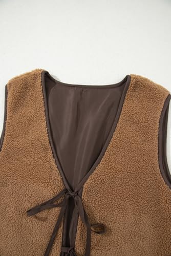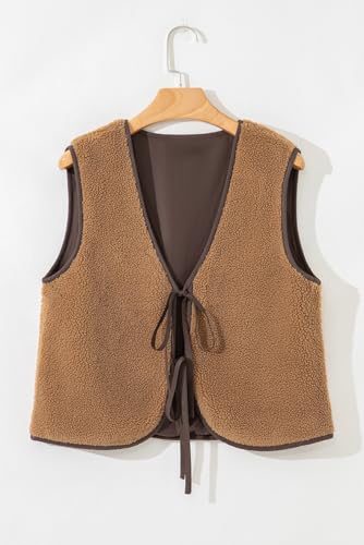 Women Fleece Sherpa Vest Casual Tie Front Sleeveless Puffer Sherpa Jacket Vest Trendy Fall Clothes 7