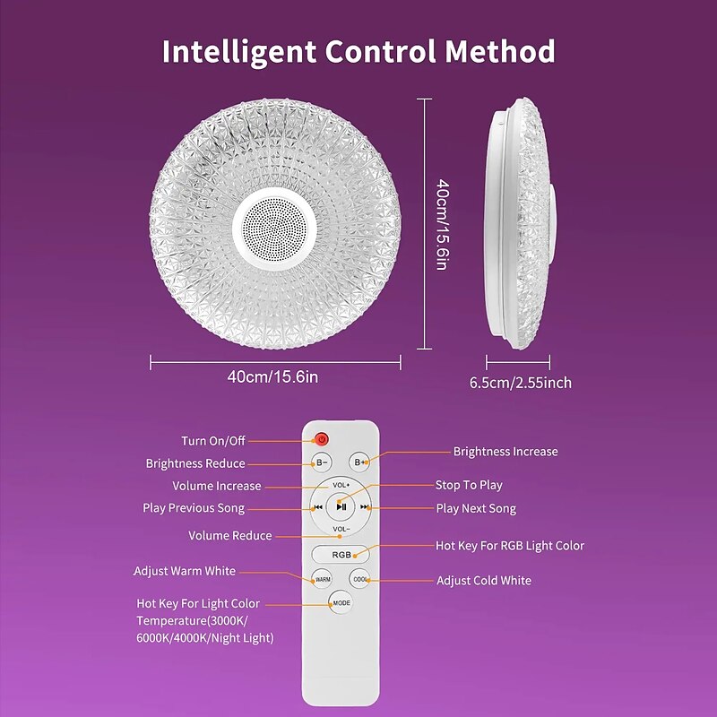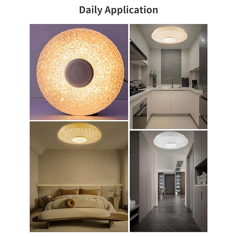 Led music ceiling light 15.6 in 36W with Bluetooth Speaker  Remote Color Change Remote Control / Smartphone App Control Suitable for Kitchen Living Room Bedroom Children's Room Corridor 19