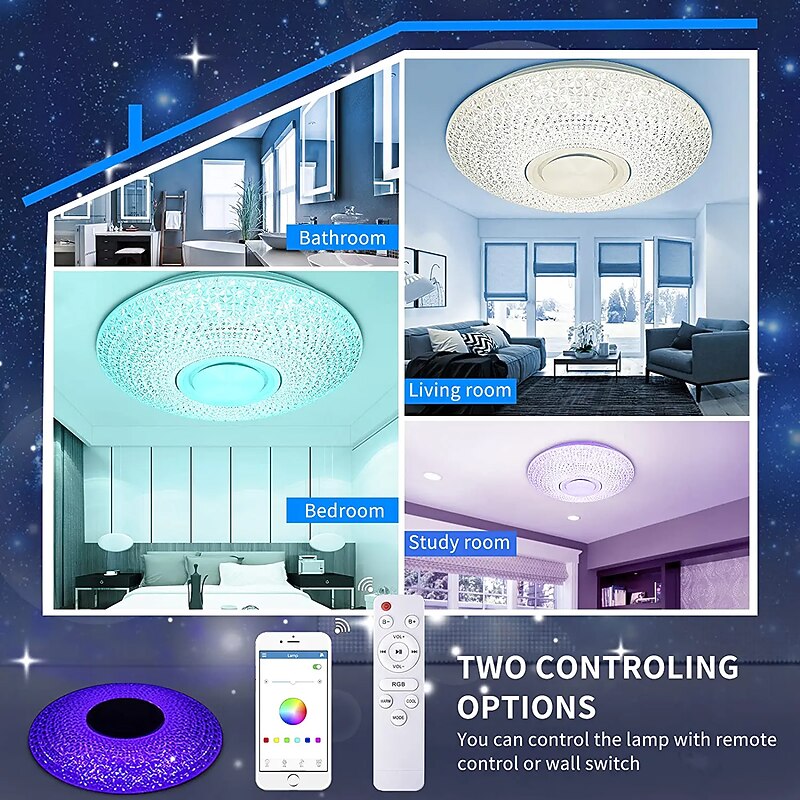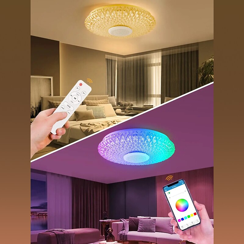 Led music ceiling light 15.6 in 36W with Bluetooth Speaker  Remote Color Change Remote Control / Smartphone App Control Suitable for Kitchen Living Room Bedroom Children's Room Corridor 17