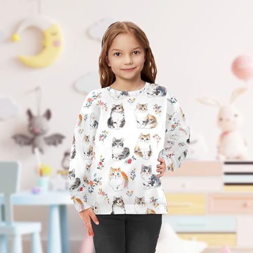 JUNZAN Cartoon American Curl Cats White Little Girls Hoodie Sweatshirt Long Sleeve Tops Clothing Shirts Camping 4T 5