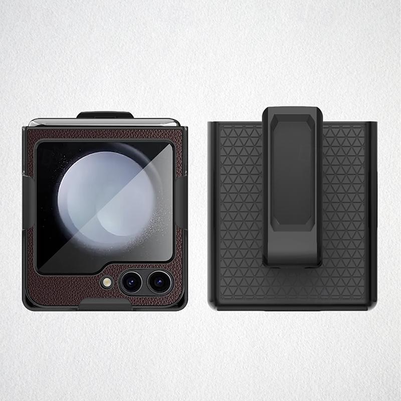 Phone Case For Samsung Galaxy Z Flip 6 Z Flip 5 Back Cover with Stand Holder with Screen Protector Shockproof PC PU Leather 8