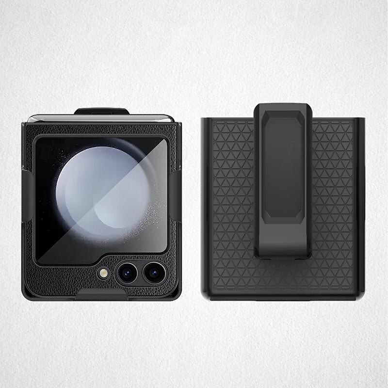 Phone Case For Samsung Galaxy Z Flip 6 Z Flip 5 Back Cover with Stand Holder with Screen Protector Shockproof PC PU Leather 7