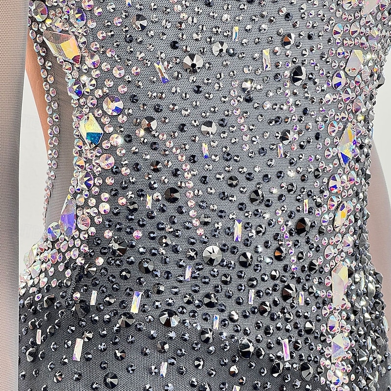 More information about Figure Skating Dress Women's Girls' Ice Skating Dress Black Sliver Thumbhole Open Back Mesh High Elasticity Training Competition Skating Wear Classic Crystal / Rhinestone Long Sleeve Ice Skating