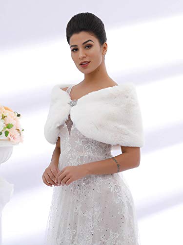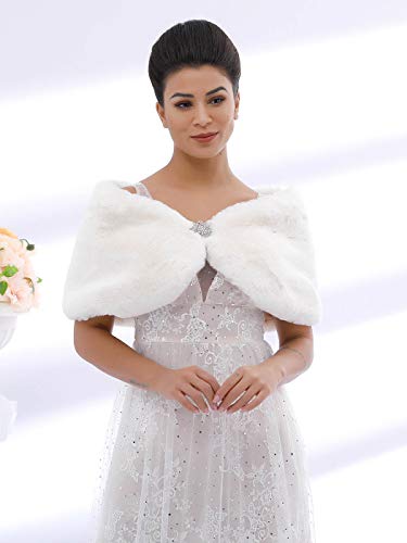 Aukmla Wedding Party Fur Wraps and Shawls Bridal Stole Sleeveless Faux Fur Shawl with Stunning Rhinestones Crystal Brooch