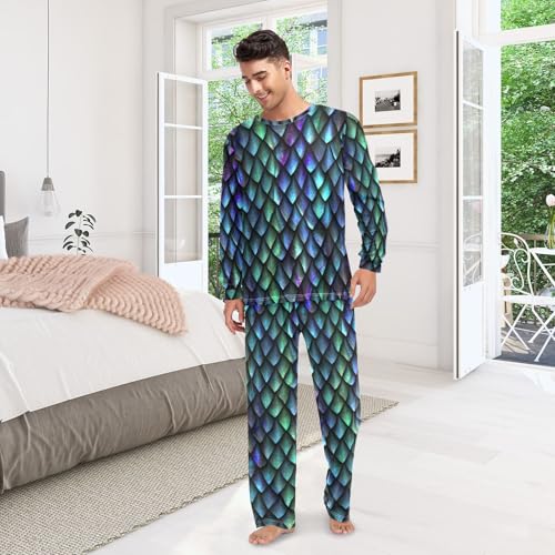 Couples Matching Pajama Sets Dragon Scale Two-piece Long Sleeve Sleepwear for Men & Women XXS-XXL 3