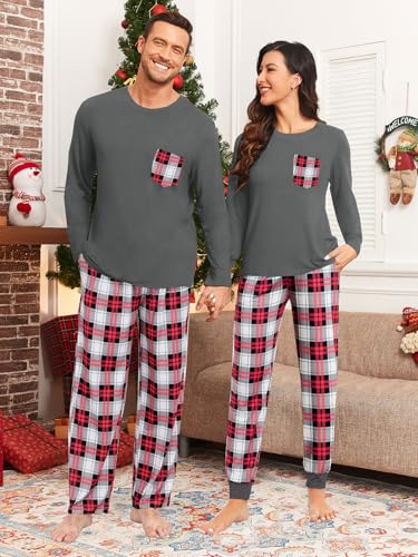 Matching Couple Pajamas Buffalo Plaid Christmas Pjs with Pockets Modal Long Sleeve Sleepwear Deep Grey Plaid L 6