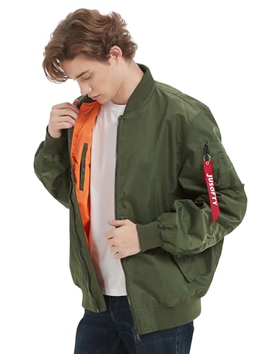 • 2.Multiple Pockets: The mens bomber jacket has 5 pockets, 2 inner button pockets, 2 outer button pockets, and 1 arm zipper pocket. Pockets of different sizes and capacities meet various storage needs and are secure, making it difficult to lose personal items.