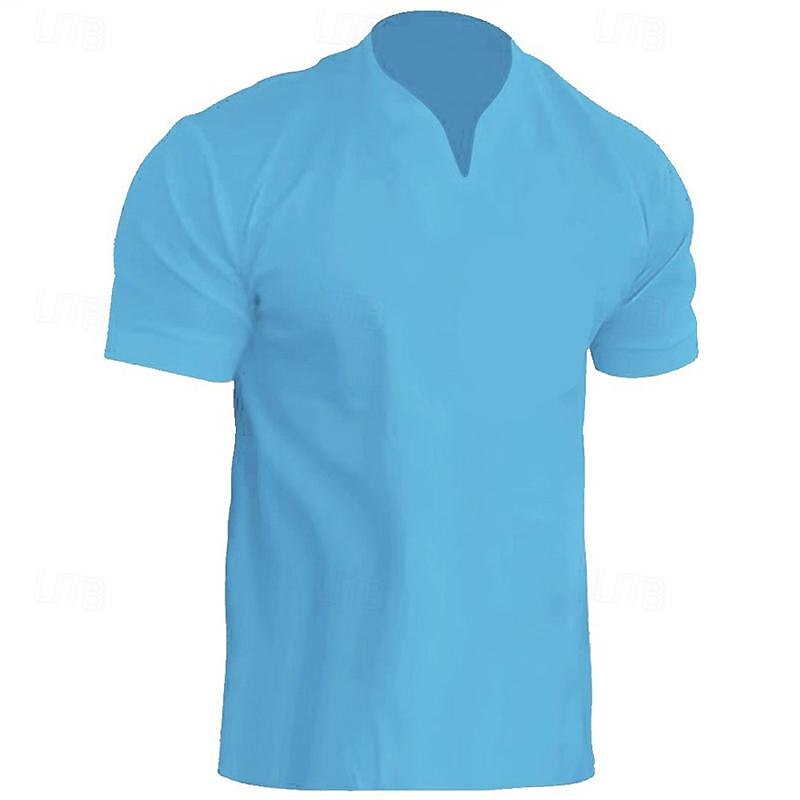 Highlights [Fabric]: This men's T-shirt is crafted from a soft cotton blend, providing breathability and comfort, ideal for everyday wear. The micro-elastic quality of the fabric ensures a flexible fit, making it suitable for various activities. [Fit]: Designed with a regular fit, this T-shirt offers a natural silhouette that is neither too tight nor too loose, allowing for comfortable movement throughout the day. [Design Highlights]: The shirt features a classic V-neck, adding a modern touch to your wardrobe while maintaining a casual, laid-back appeal. Its plain, solid color design makes it versatile for pairing with different styles and outfits. [Occasions]: Perfect for vacation, street wear, casual daily outings, or going out. Whether you're strolling around the city or enjoying a relaxed day, this T-shirt seamlessly combines comfort with style. [Size Range]: Available in a wide range of sizes from S to 5XL, catering to a variety of body types and preferences, ensuring a comfortable fit for everyone.
