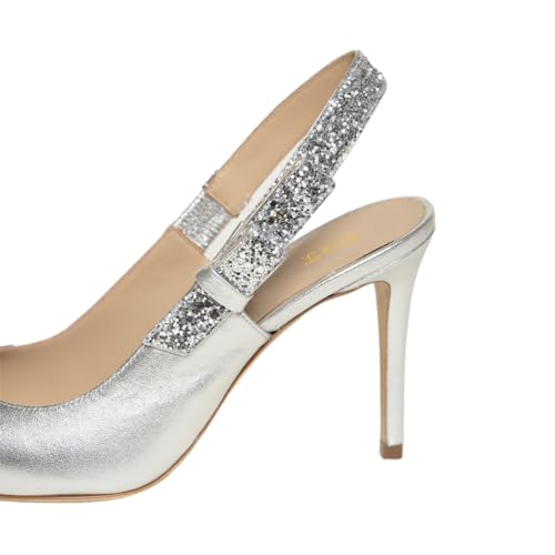 FOWT Women Slip on Pointed Toe Pumps Glitter Bow Stiletto High Heel Slingbacks Backless Elegant Prom Shoes Size 4-16 US 4
