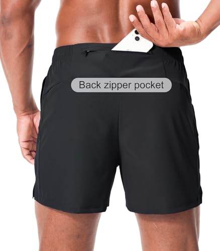 Surenow Men's Workout Running Shorts Quick Dry Gym Shorts Active Lightweight Shorts Athletic Shorts for Men with Zip Pockets 6
