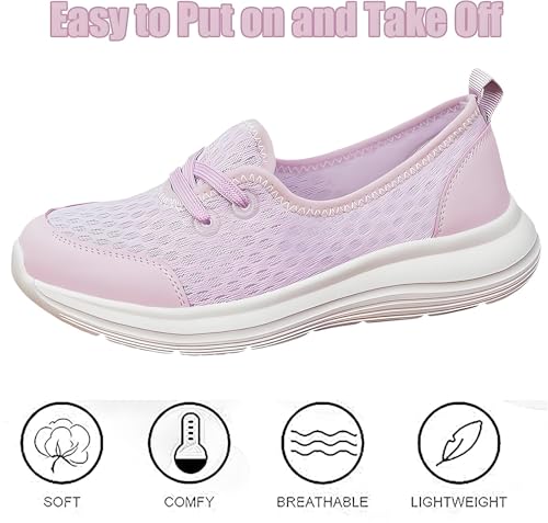 • 【Lightweight & BreathableLightweight mesh walking shoes for wome breathable mesh keeps feet cool and dry, while the slip-on design makes it easy to slip on and off. The lightweight sole ensures you can move freely without feeling heavy, while still enjoying excellent support and durability