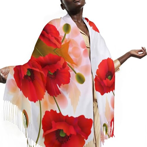 Fashion Scarves Shawl Poppy Flowers Vivid Petals Printed Tassel Shawl Scarf for Women Warm Soft Large Long Rectangular Fashion Scarves 6