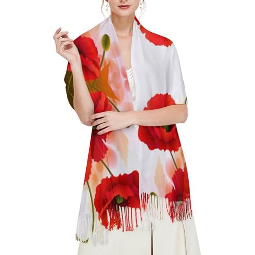 More information about Fashion Scarves Shawl Poppy Flowers Vivid Petals Printed Tassel Shawl Scarf for Women Warm Soft Large Long Rectangular Fashion Scarves