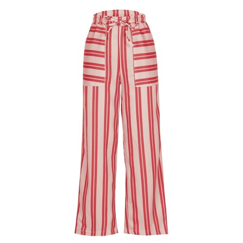 HOT ! fanmpghleoo Striped Linen Pants Women Summer Drawstring Wide Leg Palazzo Pants for Women Casual High Waisted Linen Trosuers