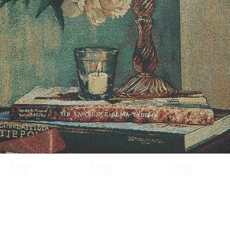 Jacquard Woven Tapestry Gobelin Aubusson Wall Art Hanging Large Tapestry Reproduction Loom Cotton Weave Tulips in a Vase Belgian Tapestry (without tassels and rod) 8