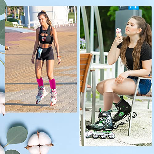 • Knee Design: these skating socks with knee length and comfort top are designed to keep your calves from slipping; The top is designed to hold your calves in place without being as uncomfortable as a tight bandage, and the skating nylon socks don't slip off easily or bind your legs too much