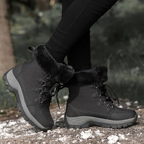 • Cozy Warmth:womens snow boots features a soft faux fur collar, excellent insulation,and leather reinforced toe and heels which provides long-lasting comfort with superior cushioning