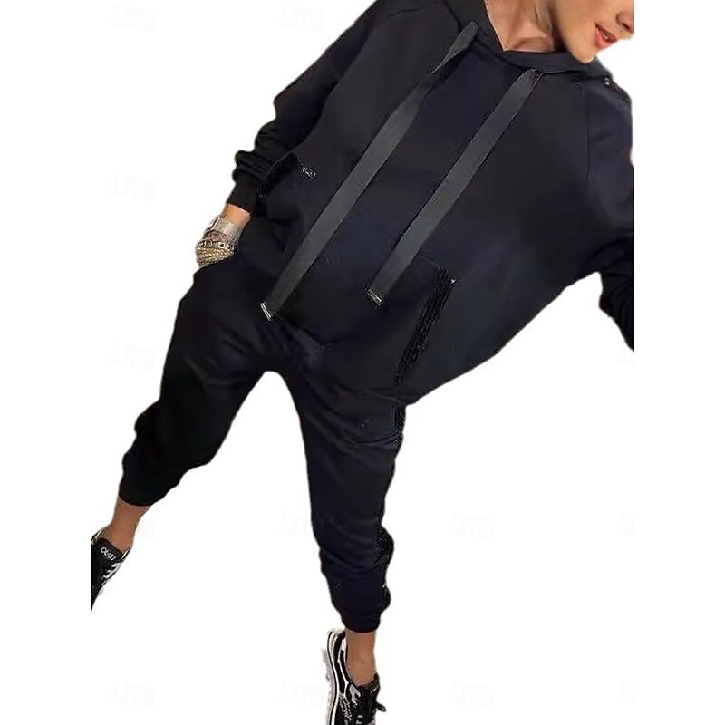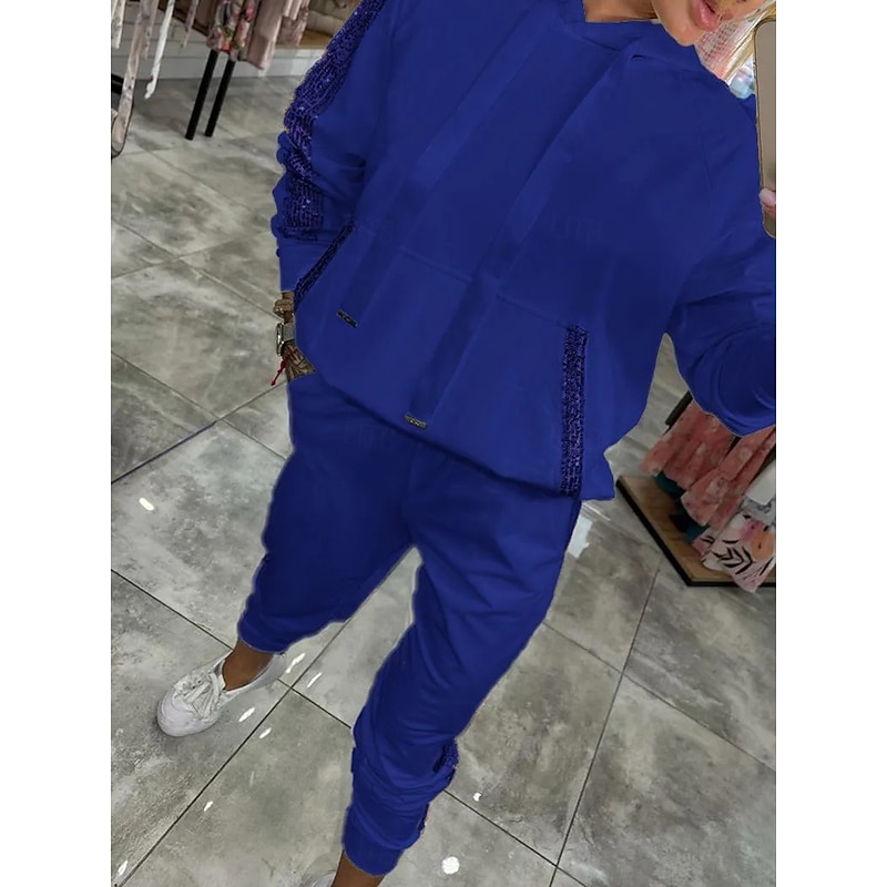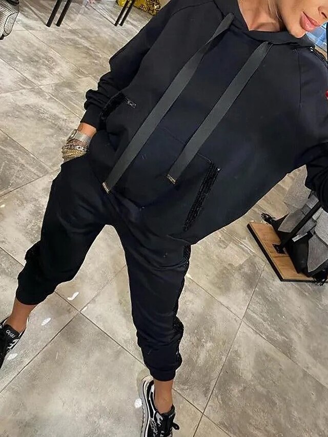 More information about Women's Fashion Hoodies & Sweatshirts Chinos Long Sleeve Hooded Solid Color Sequins Work Daily Wear Black Royal Blue Gray Spring & Fall Regular Fit