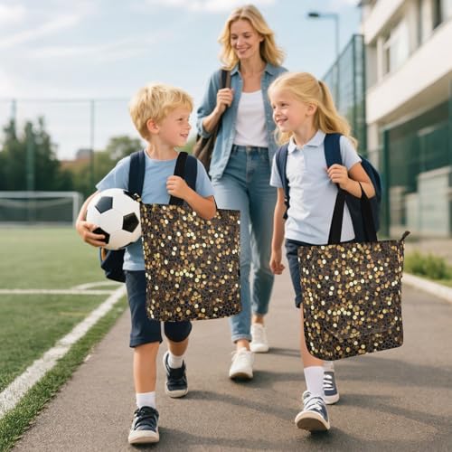 HOT ! Decorative Kid Tote Bag for Kids Adults, Black and Gold Fake Sequins Water-resistant Teacher Tote Bags Handbags with Inner Pockets for School and Playtime Rainbow mochilas para