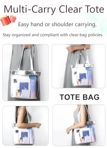 HOT ! Bling Silver 12x12 Clear Bag for Stadium Events 12 x6 x12, Clear Tote Bag Stadium Approved 12x6x12 Transparent Shoulder Purse for Women 12 x 6 x 12 Work Festival Concert Crochet Yarn Storage