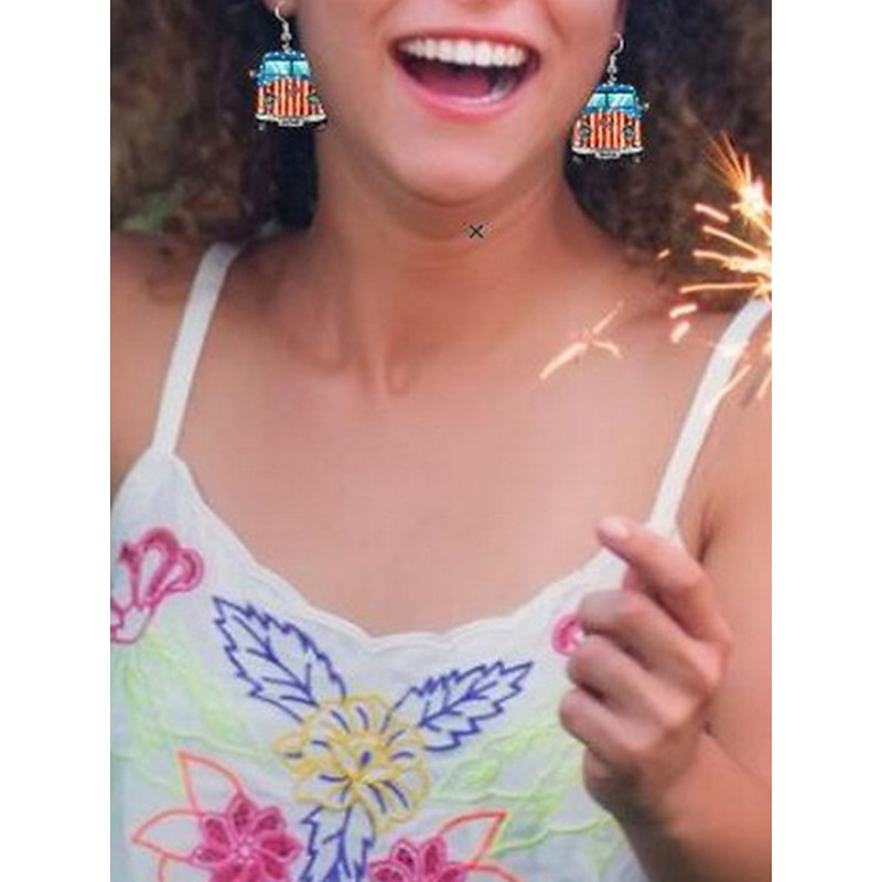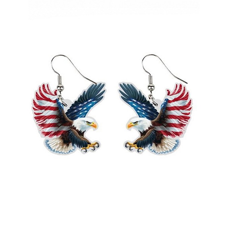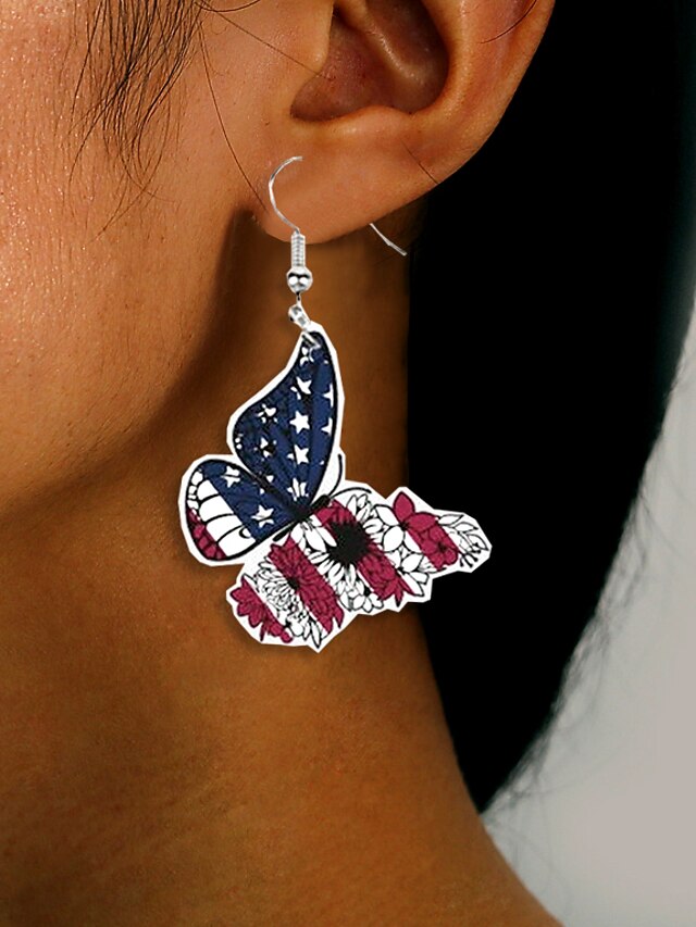 Highlights [Fabric & Material] : Crafted from lightweight alloy, these women's earrings offer durability and comfort for all-day wear. The material ensures that the earrings do not feel heavy, making them ideal for everyday use. [Design & Style] : These contemporary earrings feature a unique butterfly design adorned with the distinctive American flag motif. The intricate pattern of stars and stripes on the butterfly wings adds a touch of patriotism and flair, perfect for those looking to make a stylish statement. [Design Highlights] : The earrings are designed with a simple hook for easy wear, adding a modern and convenient touch. Their sleek form ensures they complement any outfit, while the vibrant red and blue colors stand out, making them a versatile accessory for various occasions. [Occasions] : Suitable for a variety of settings, these earrings can be worn daily or for special themed events. Whether it's a day out in the park, a weekend adventure, or a holiday celebration, they add a fashionable and patriotic statement to any look. [Size & Fit] : Available in a one-size-fits-all design, these earrings are easy to match with different styles. They are perfect for adult women who appreciate a blend of fashion, comfort, and national pride in their accessories.