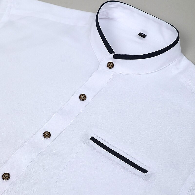 More information about Men's Shirt Band Collar Shirt Dress Shirt Button Up Shirt Oxford Shirt Patchwork Wedding Vacation White Navy Blue Blue Gray Long Sleeve Standing Collar Spring & Summer Clothing Apparel Front Pocket