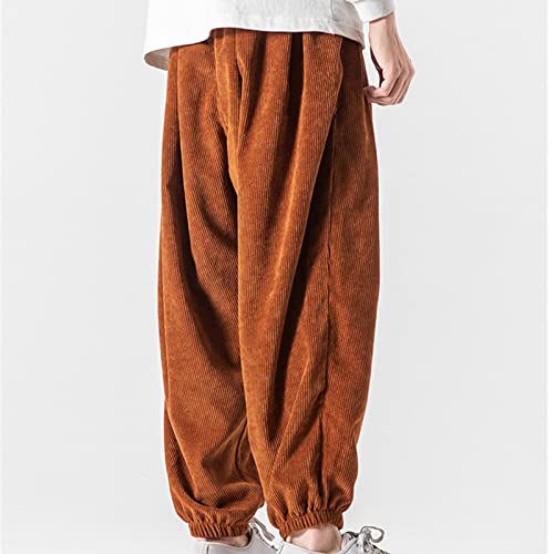 JEShifangjiusu Men Corduroy Pants Drawstring Elastic Waist Harem Pants Baggy Casual Loose Hippie Long Trousers with Pockets