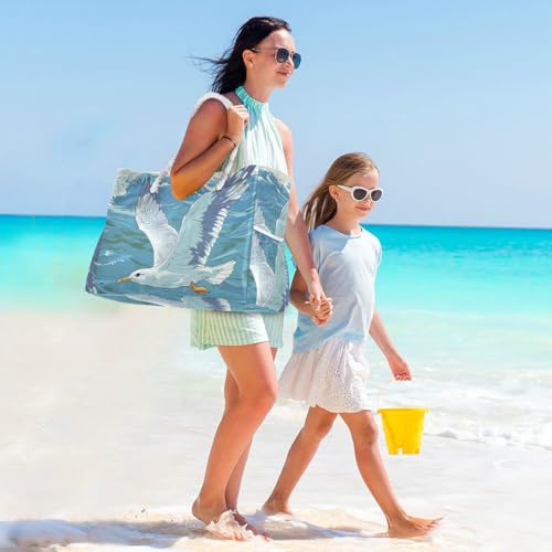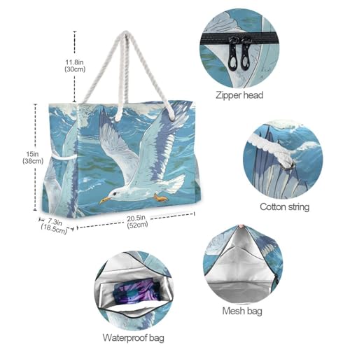 Seagull Flying over The Ocean Waves Sturdy Pocket Tote Bag with side pocketes Weekender Travel Bag for Pool Gym Grocery Travel 6