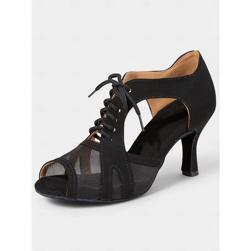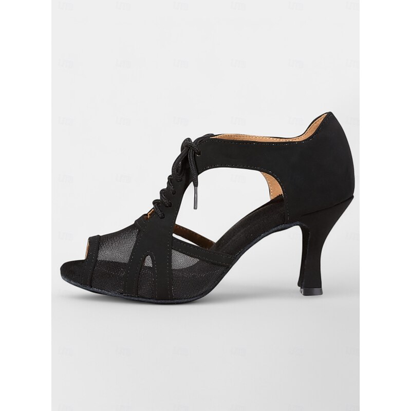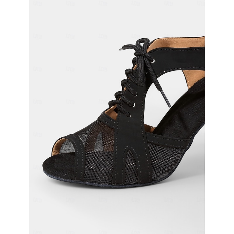 Nude Lace-Up Dance Shoes with Mesh Cutouts – Open Toe, Mid Heel for Women – Perfect for Dance Classes and Performances 14