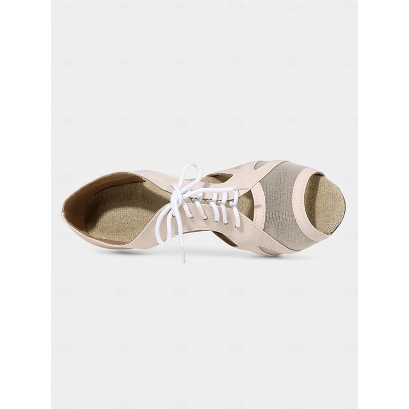 Nude Lace-Up Dance Shoes with Mesh Cutouts – Open Toe, Mid Heel for Women – Perfect for Dance Classes and Performances 1