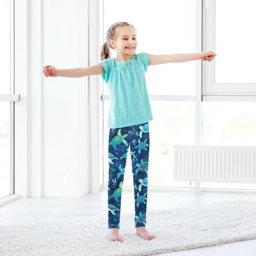 Sea Turtles Girls' Leggings Toddler Doodles Blue Kids Yoga Pants Dance Active Tights 4T 5