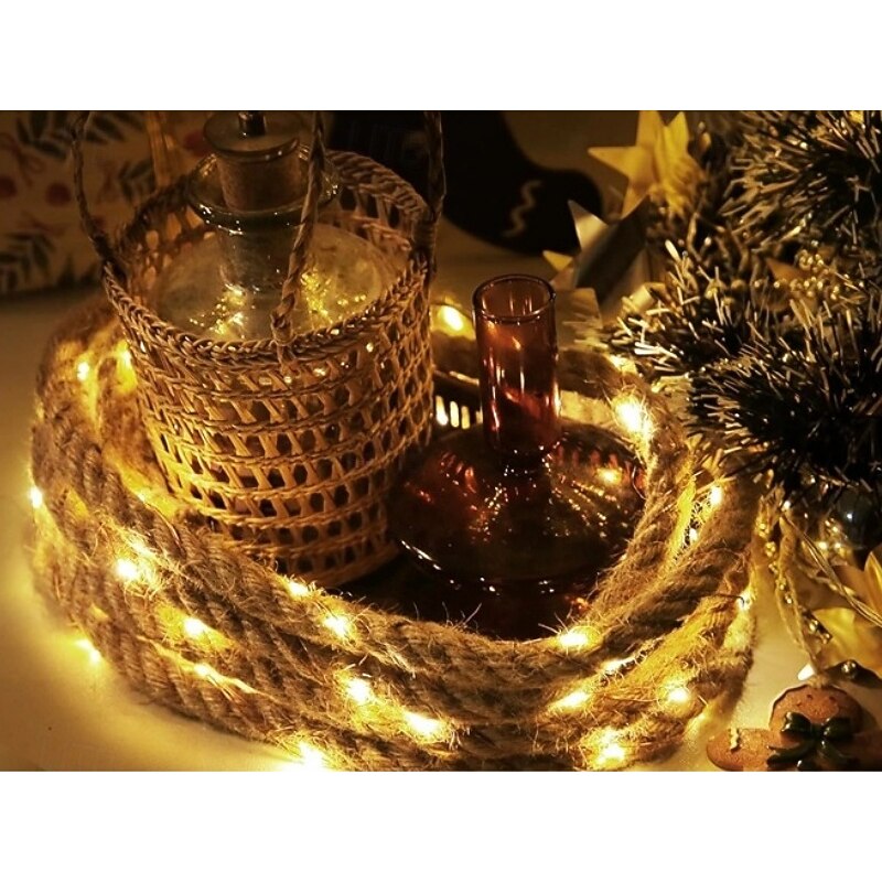 Jute Twine LED Outdoor String Lights 3m 5m 10m Battery-Operated Copper Wire String Lights  60/100/200 LEDs Waterproof Warm White Bright LED Light for 3AA BATTERY BOX REMOTE for Halloween 8