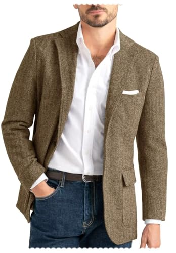 • 【Fabric】:This classic tweed blend suit jacket for men is made of premium wool blend fabric with classic herringbone texture to show British retro style. The fabric composition includes wool and polyester fibers to ensure crisp style while providing excellent warmth and breathability.