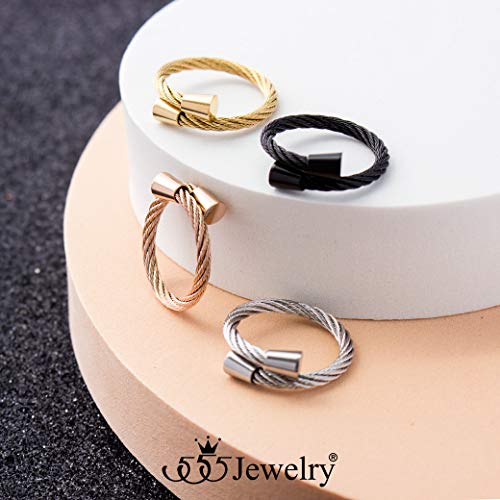 HOT ! 555Jewelry Stainless Steel Twisted Cable Adjustable Open Ring for Women & Ladies